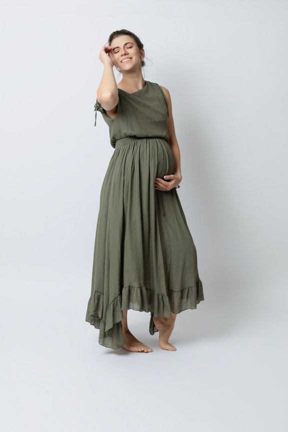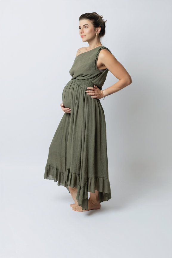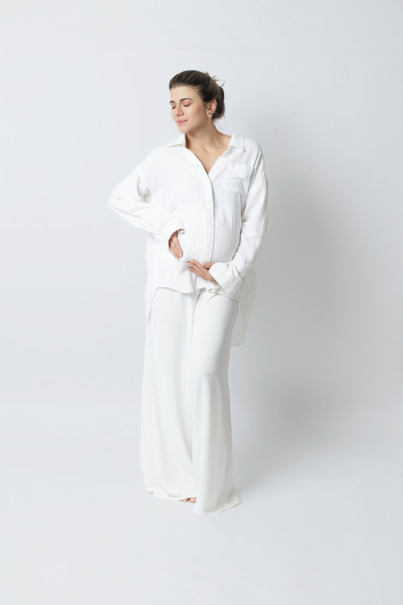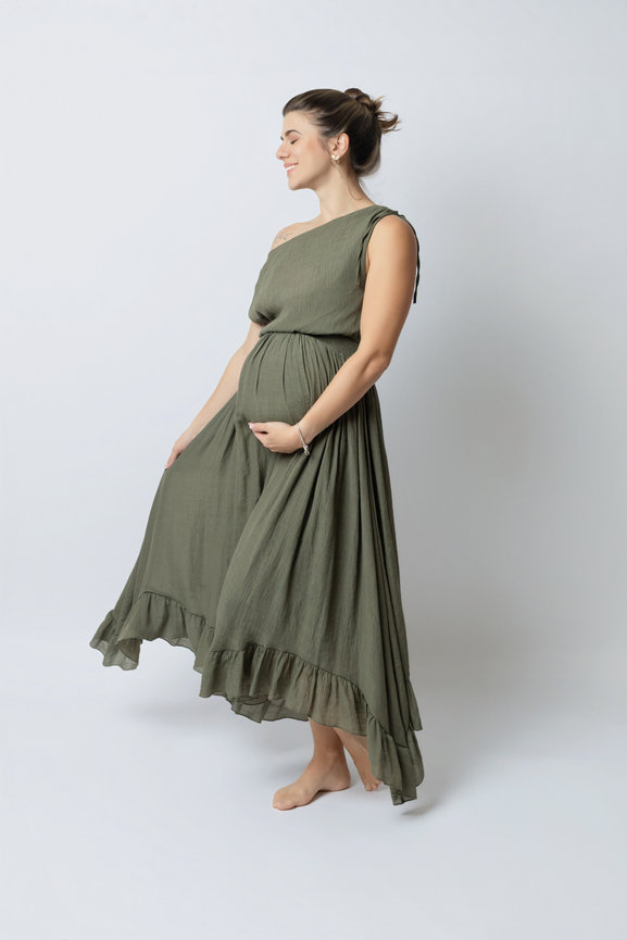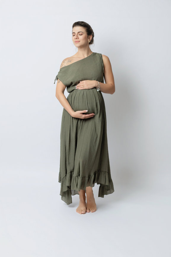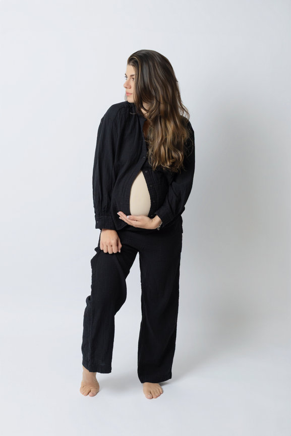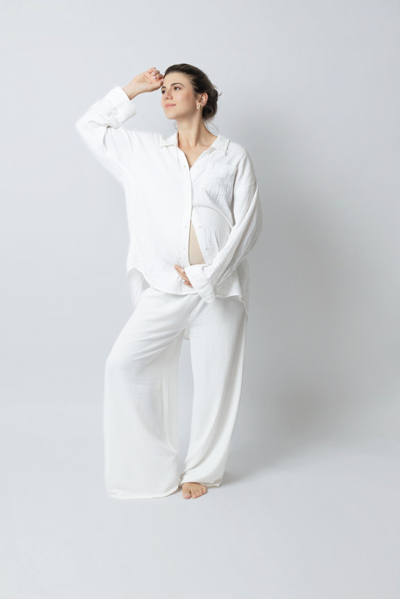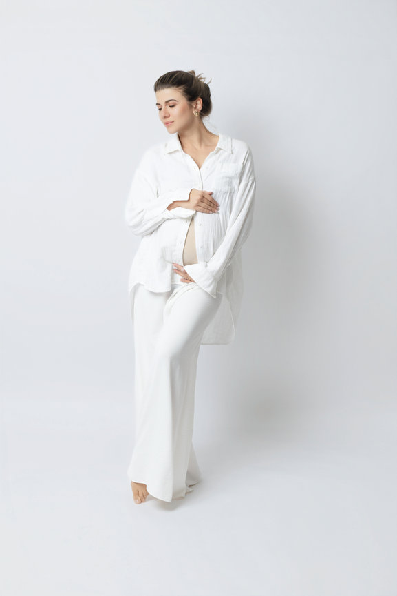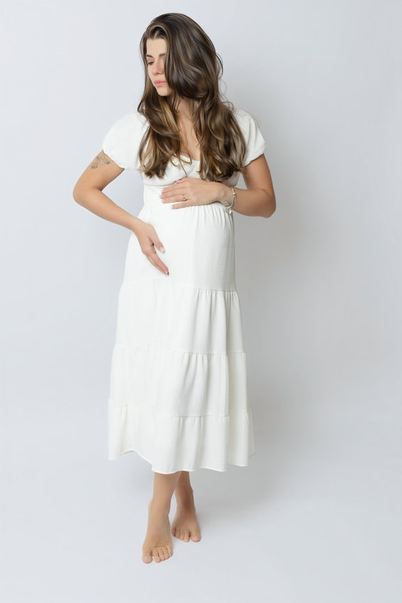 These pieces are carefully selected to enhance your natural glow and showcase your growing belly in the most graceful way. Think flowing fabrics, elegant lace, and timeless neutrals that photograph beautifully — creating a look that’s refined, artistic, and empowering.